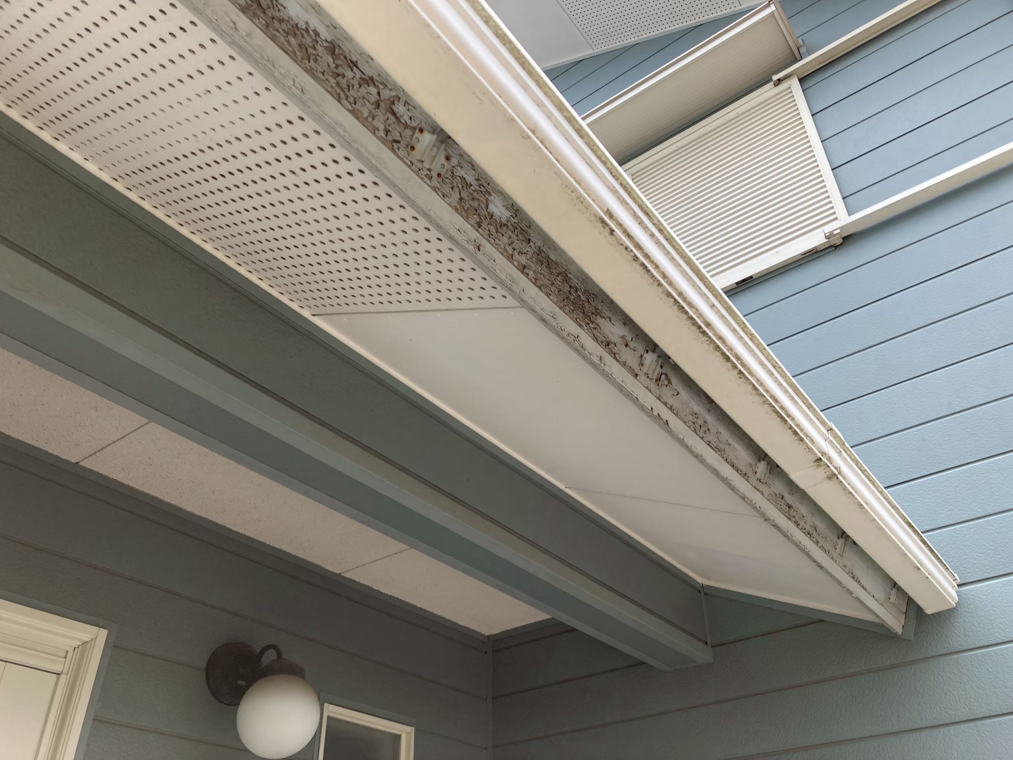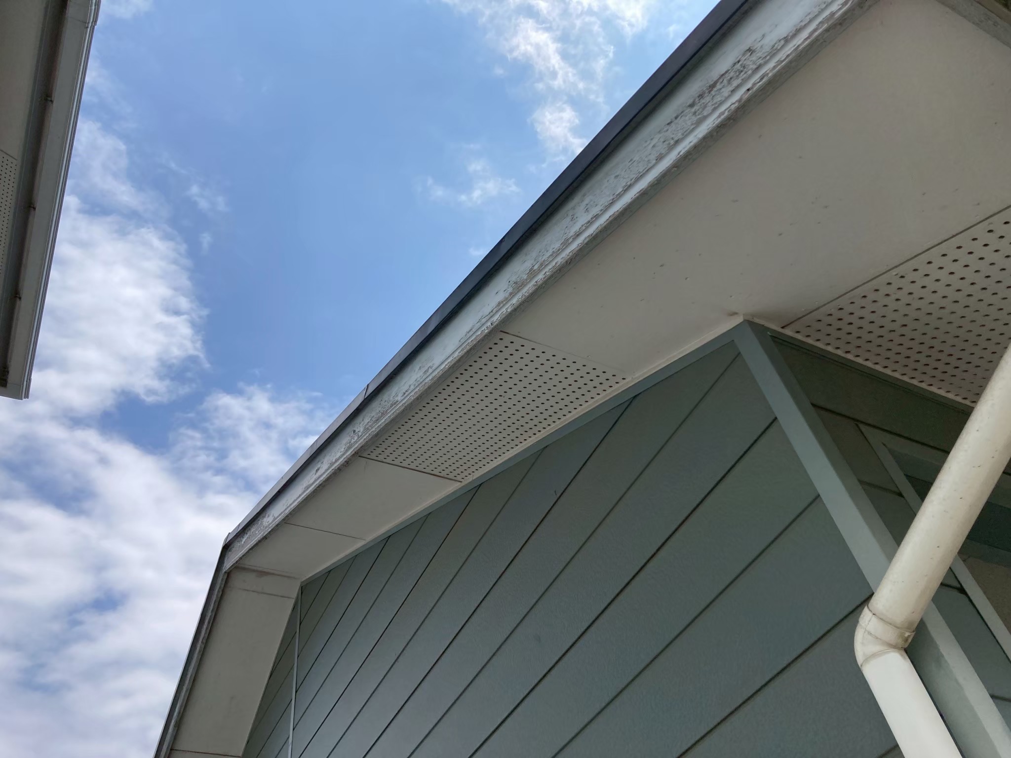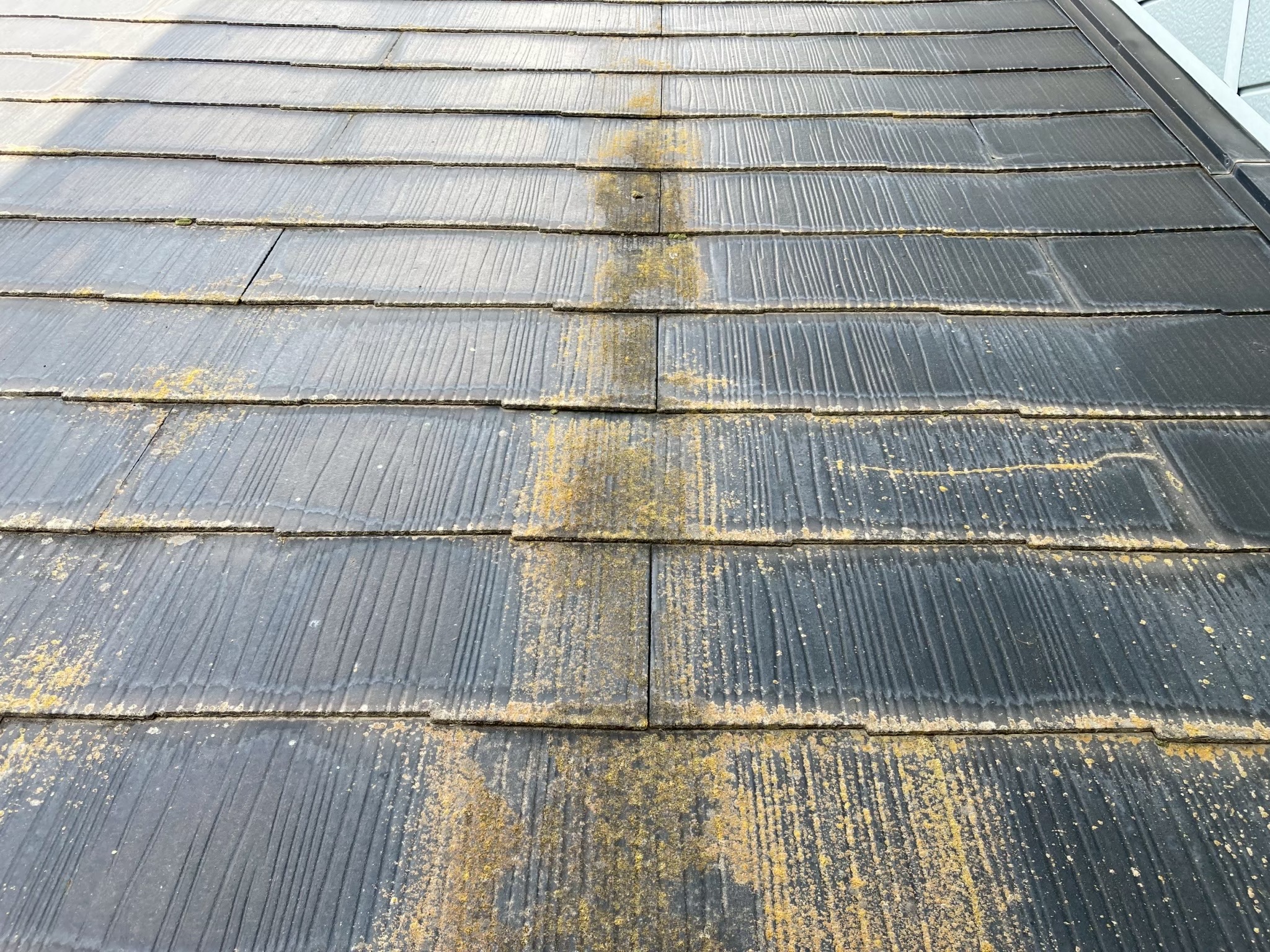 施工前の屋根の状態:藻や汚れが蓄積されています。