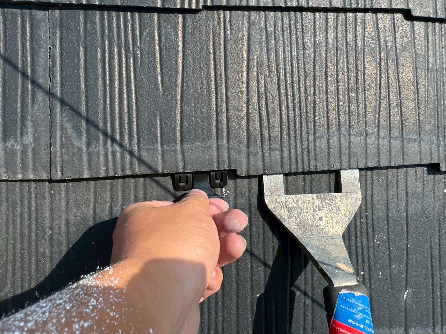 屋根の下地処理:タスペーサー工法(雨漏りを防ぐために適度な隙間をあけています)