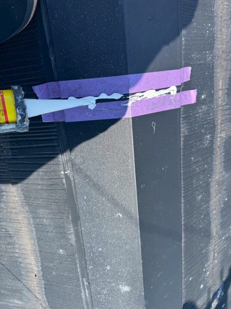 まずは棟金板の繋ぎ目をコーキングしなおします👌