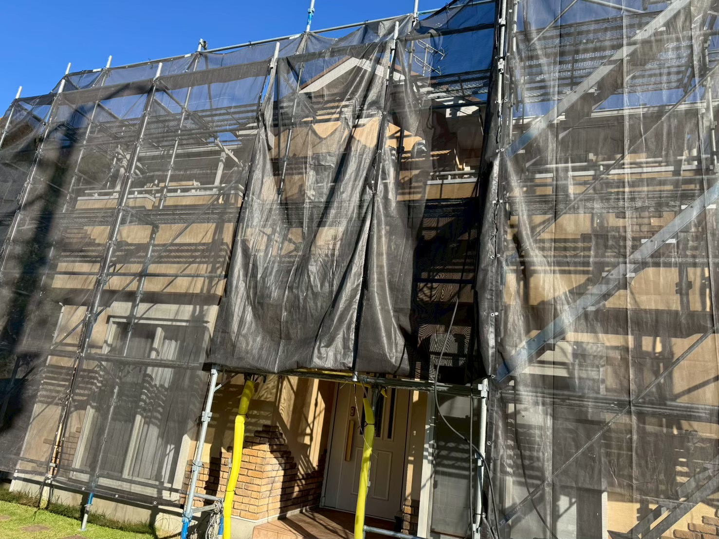 まずは足場をかけて洗浄からスタートです(#^.^#)